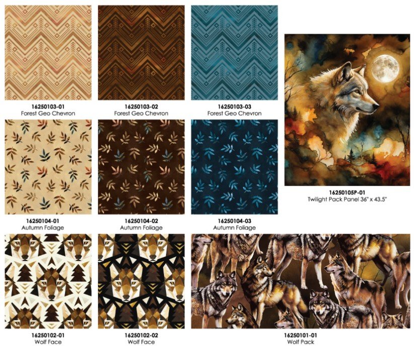 Twilight Pack by Peggy Collins Wolf Face - Pre-Order-$2 Mtr. Deposit - Delivey May 2026
